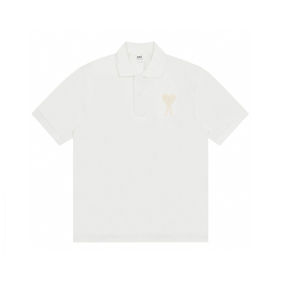 / ami Heart Embroidery Polo in White