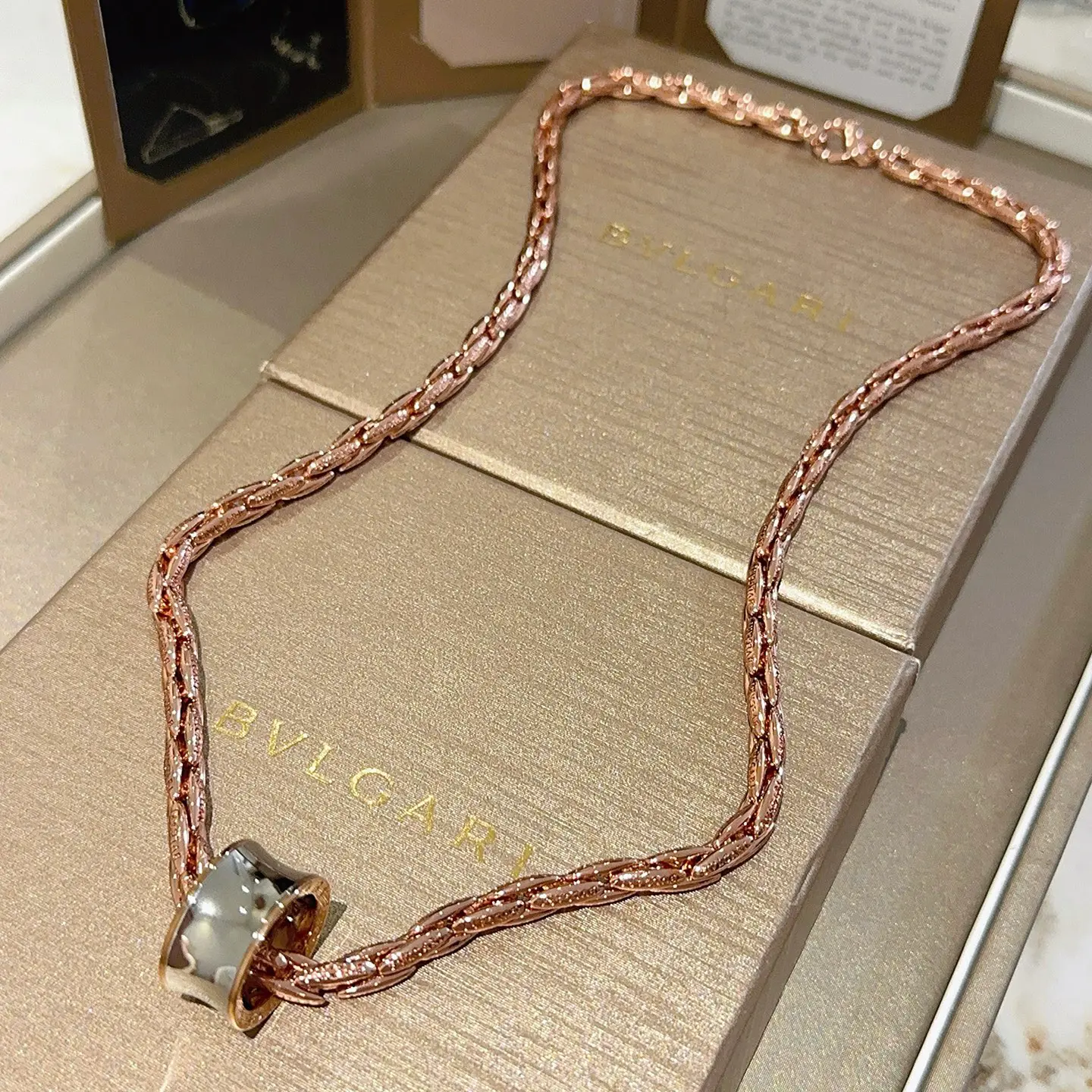 BVLGARI 18K Rose Gold Round Pendant Necklace