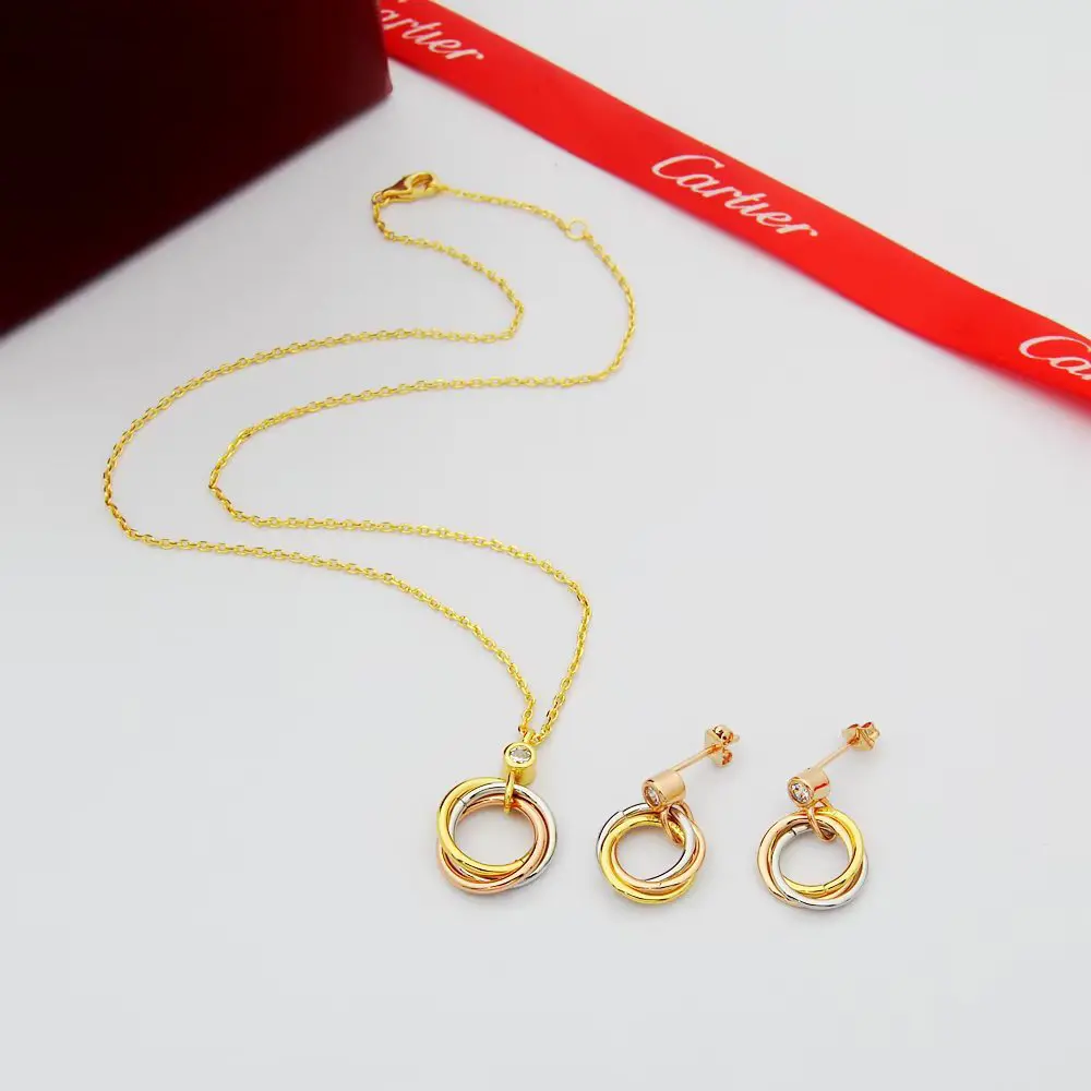 / Cartier Trinity Radiant Gold Pendant & Earrings Set