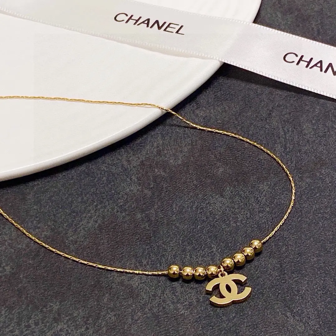 / Chanel Delicate CC Logo Necklace with Beads