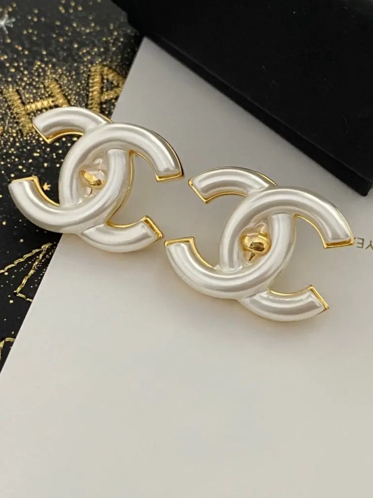 / Chanel Elegant Pearl Earrings with Gold Trim
