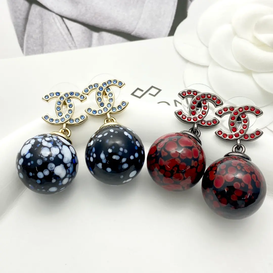 / Chanel Exquisite Marble Ball Dangles CC Logo Drop Earrings