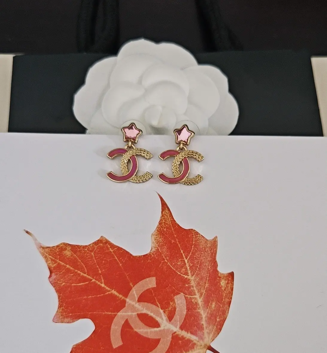 / Chanel Fancy CC Logo Earrings w/ Pink Stars