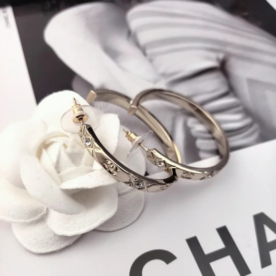 Chanel Fancy Hoop Earrings with CC Logo