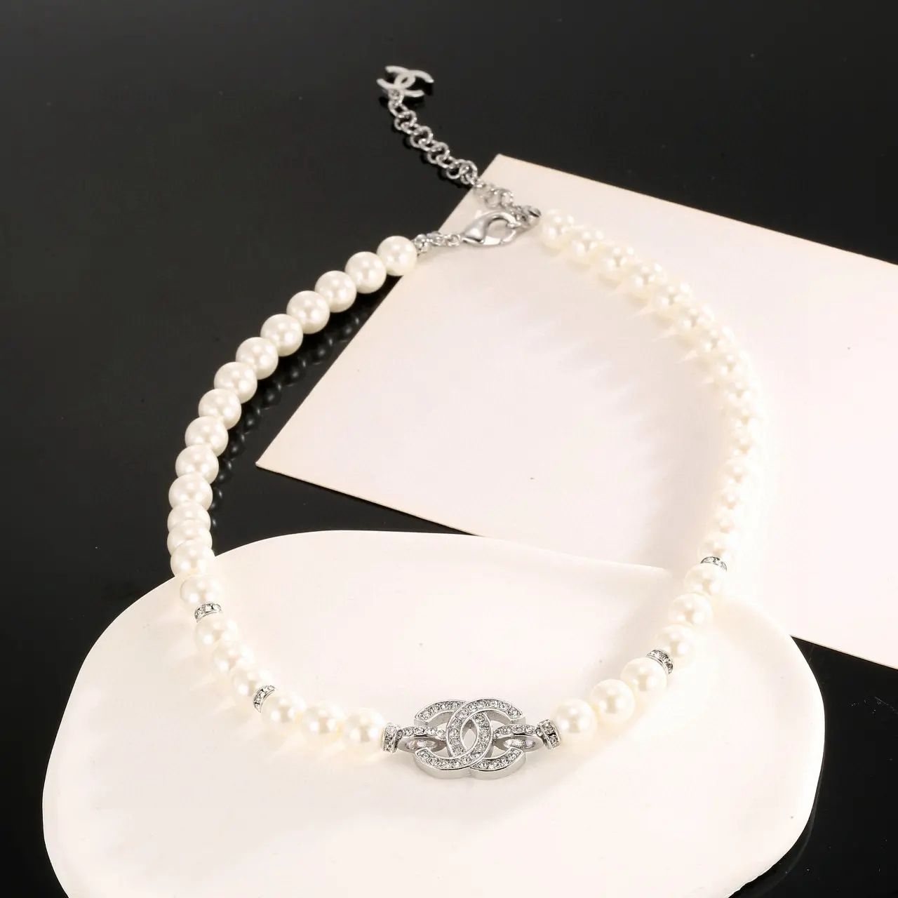 / Chanel Fancy Pearl Necklace with Crystal CC Logo