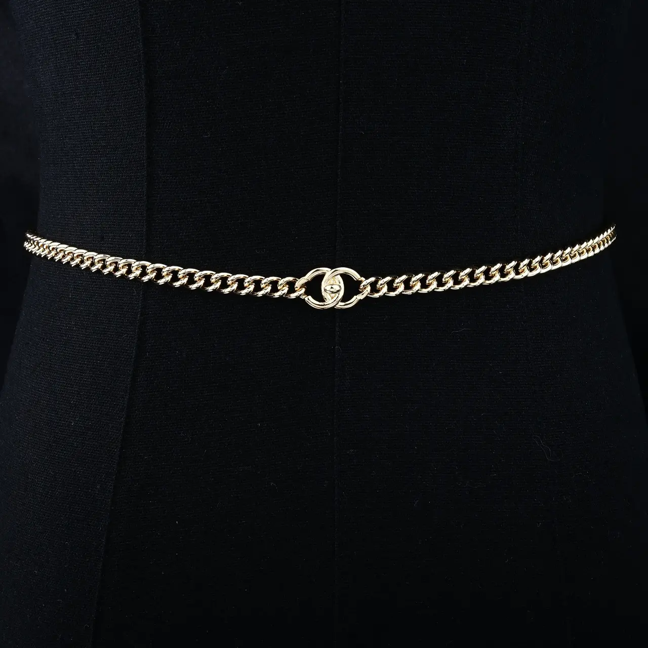 / Chanel Fashionable Gold Belt with CC Buckle