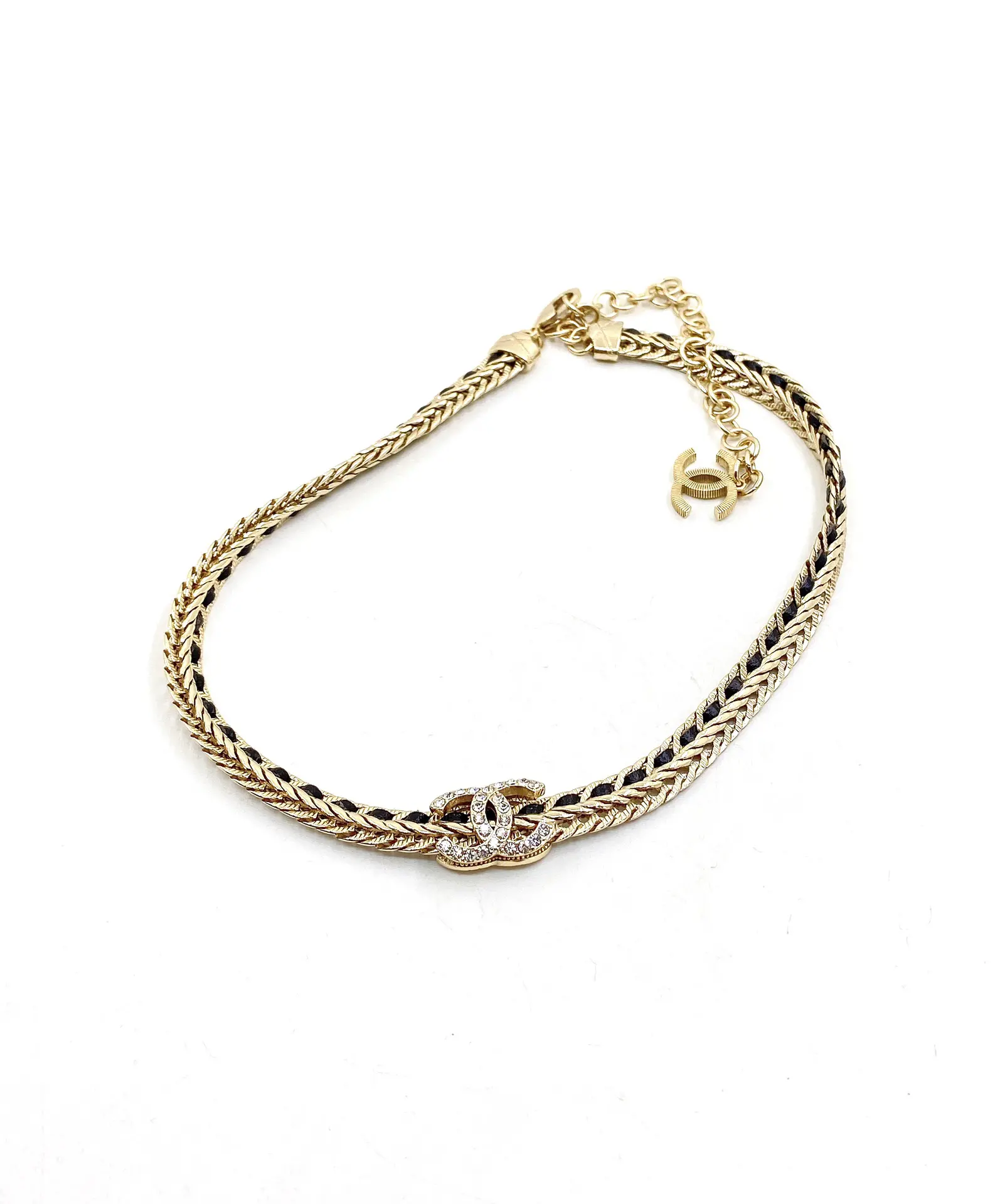/ Chanel Glamorous Gold Bracelet with Crystal CC Logo