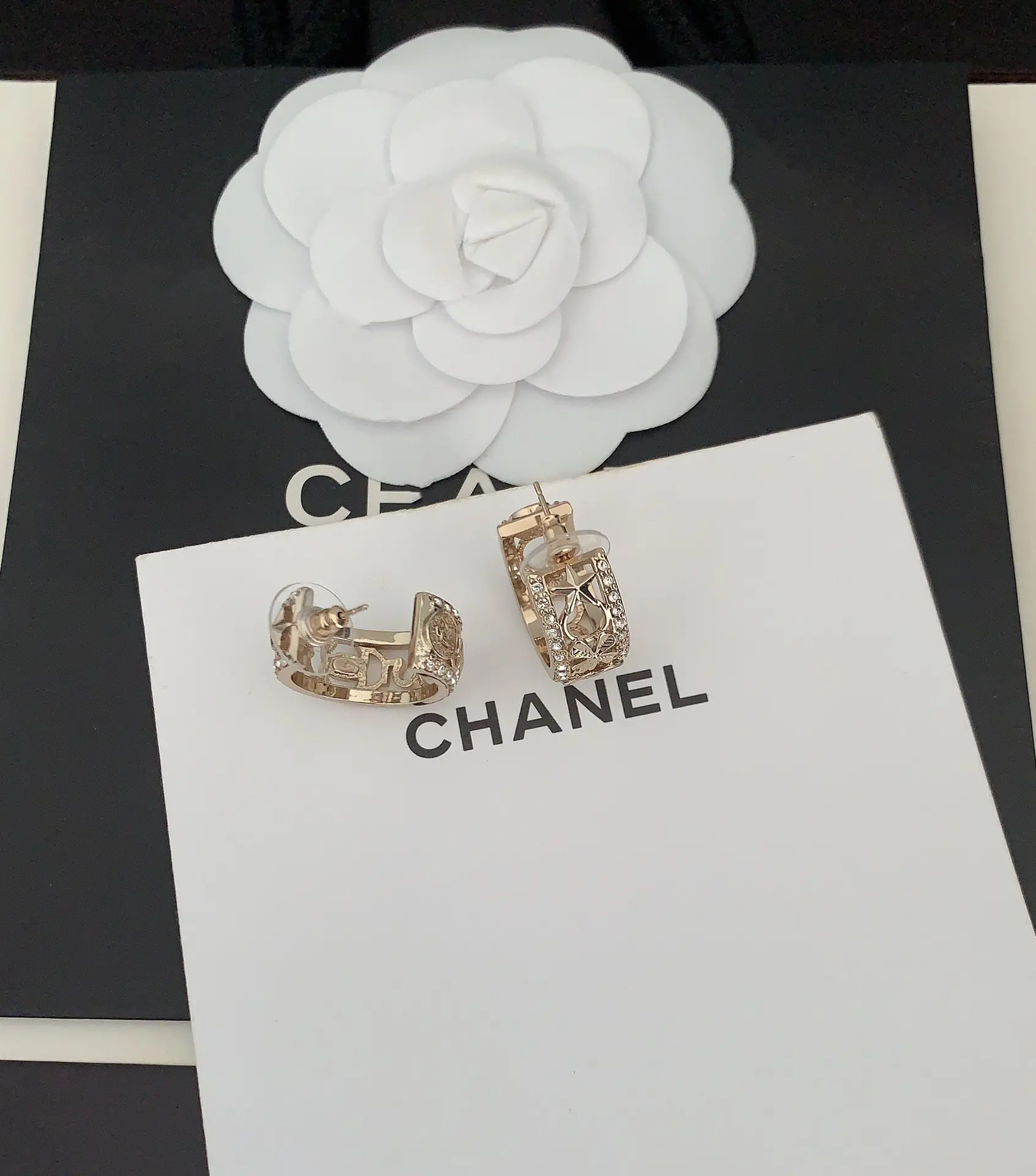 / Chanel Glamorous Hoop Earrings with Crystals