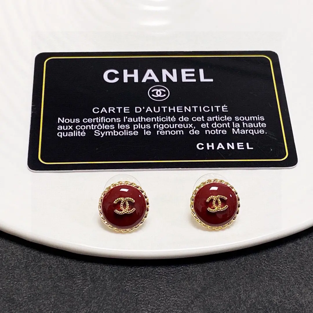 / Chanel Gorgeous Red Enamel Stud Earrings Gold