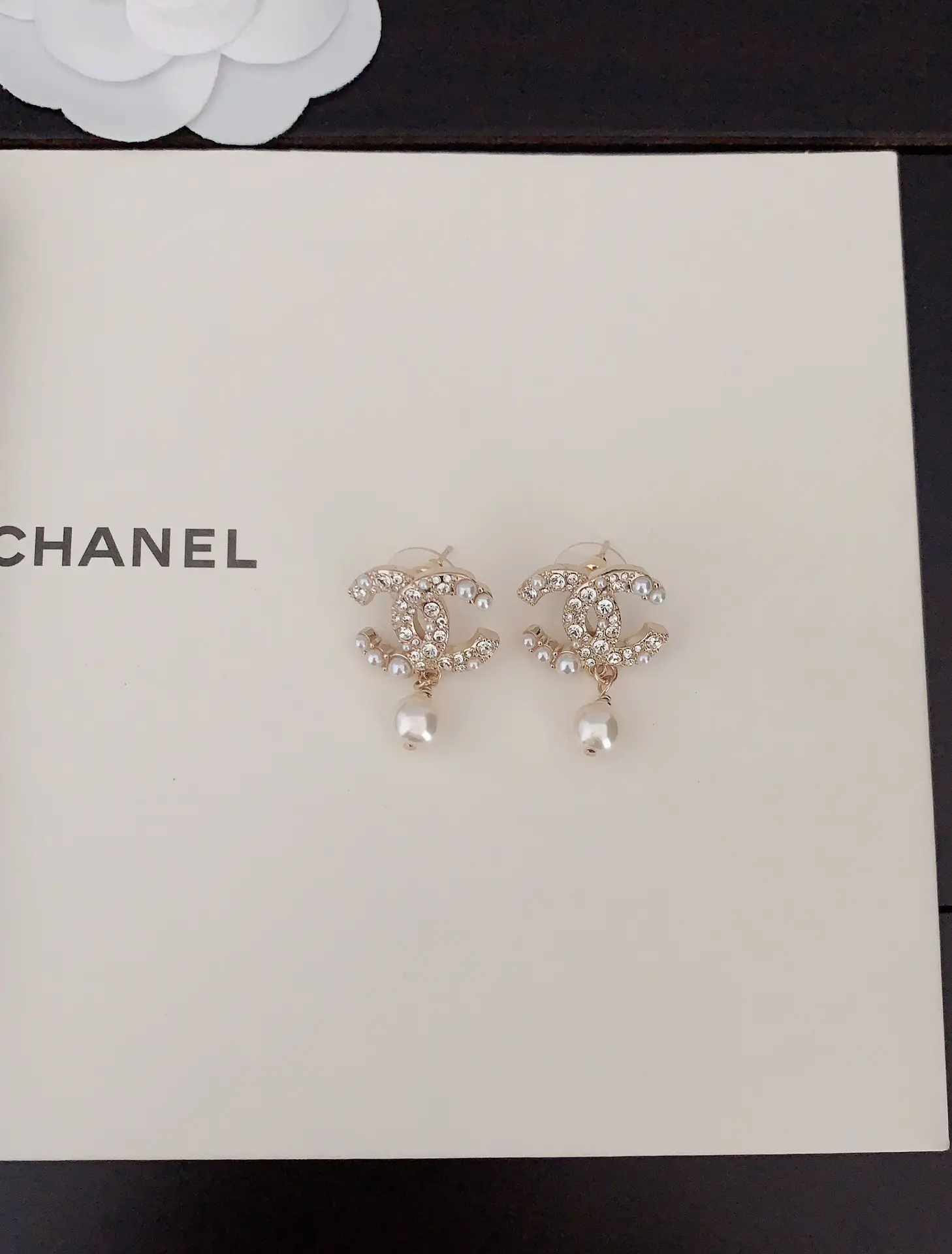 / Chanel Graceful CC Logo Pearl Drop Earrings