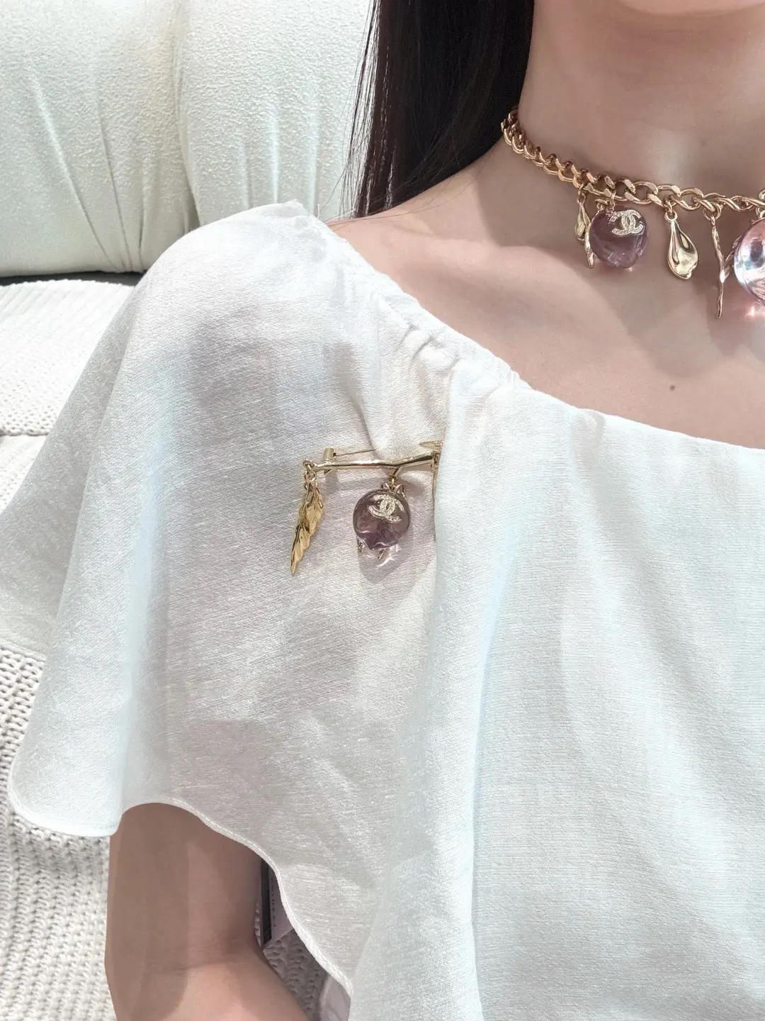 / Chanel Graceful Feather Charm Crystal Brooch