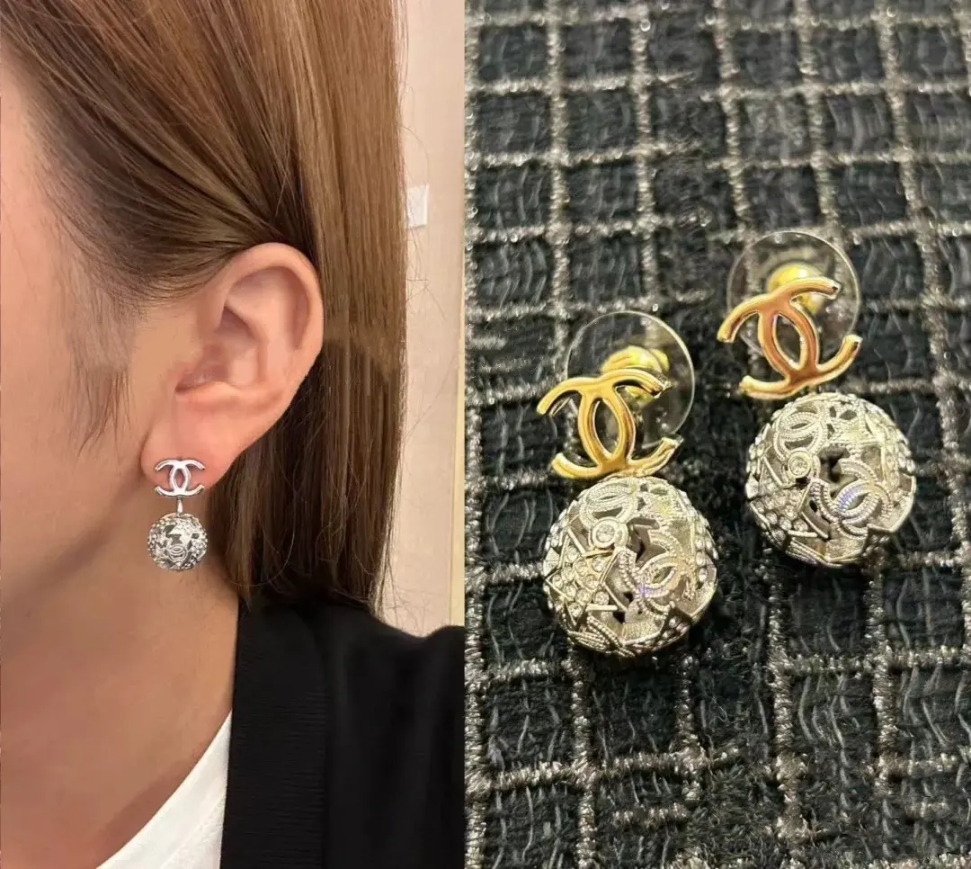 Chanel Intricate Detailed Sphere Design CC Logo Drop Earrings
