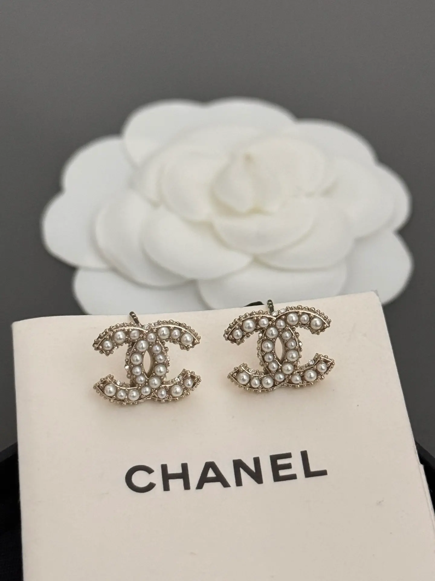 / Chanel Lustrous Pearl CC Stud Earrings