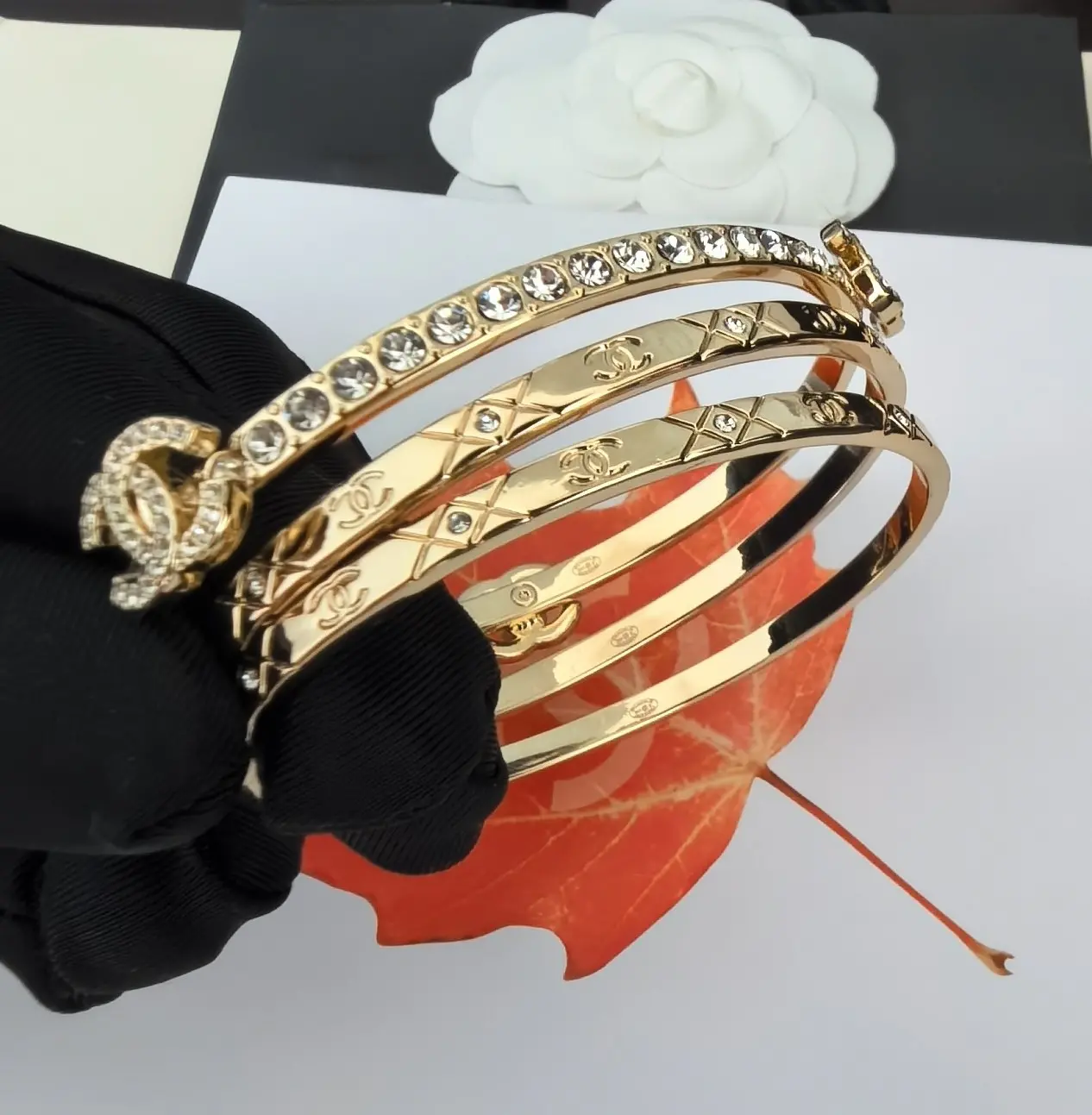 / Chanel Luxury Gold Crystal Bangle Set