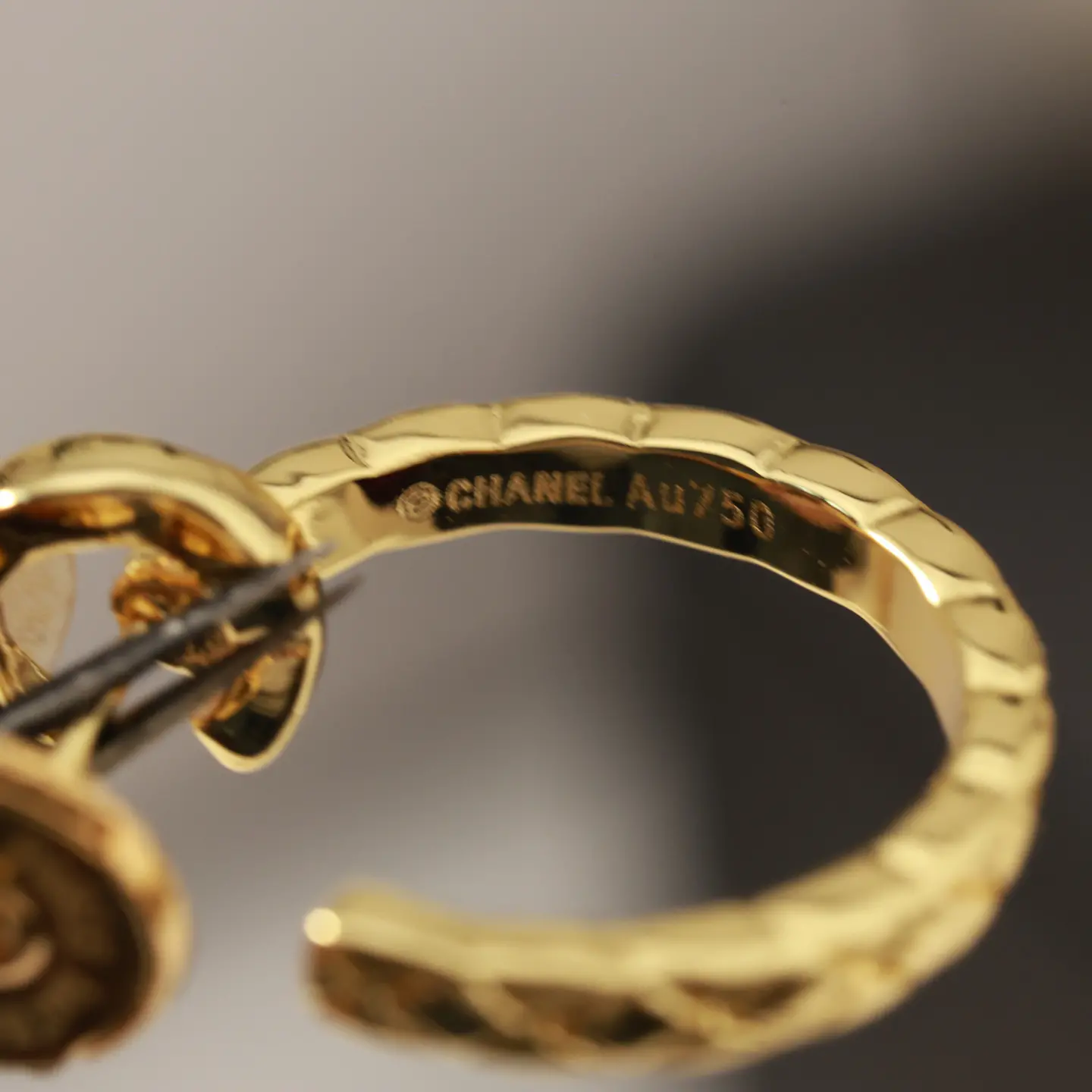/ Chanel Prestigious Au750 Gold Hoop Earrings