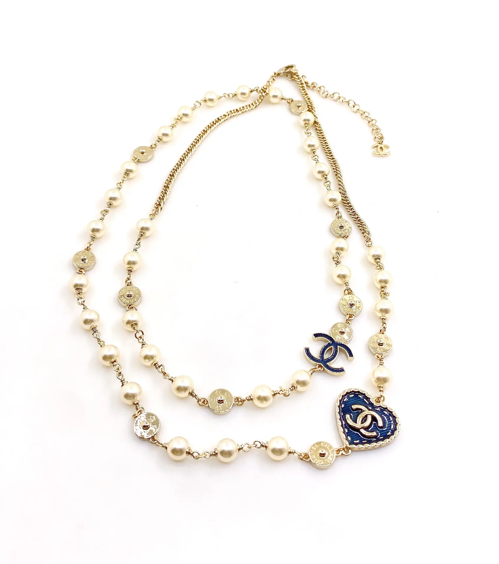/ Chanel Romantic Pearl & Chain Necklace with Heart