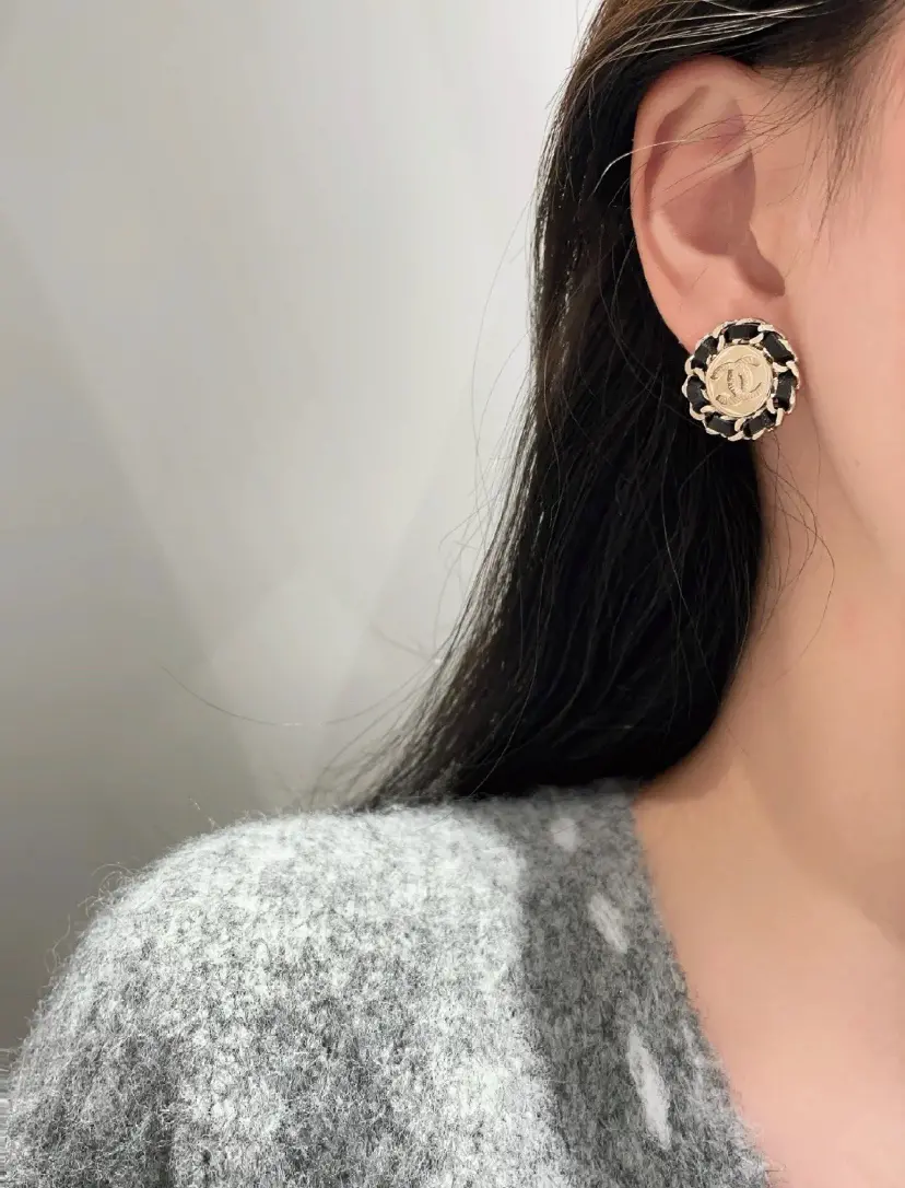 / Chanel Stunning Round Earrings with Black & Gold