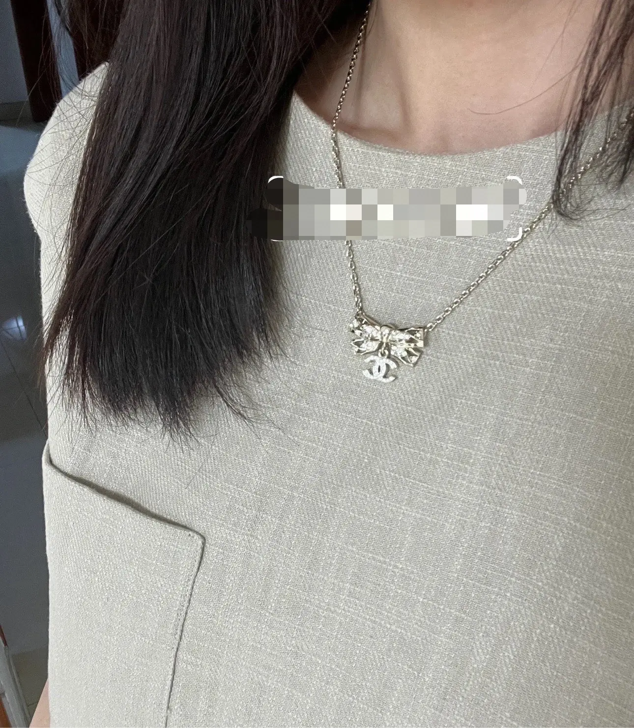 Chanel Stylish Bow Pendant Necklace with CC Logo
