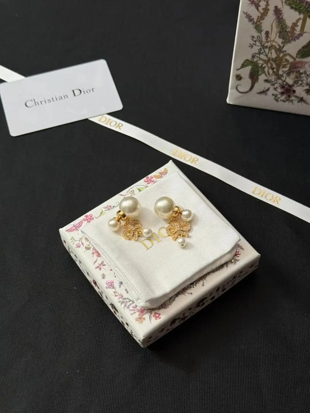 / Christian Dior Graceful Pearl Earrings w/ Gold Butterflies