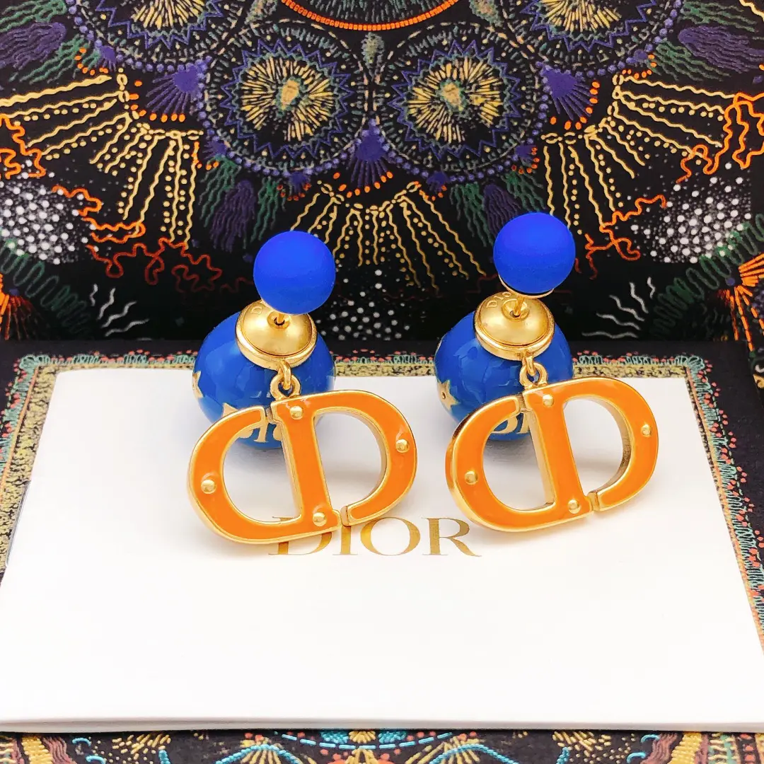 / Dior Colorful Blue & Orange D Logo Earrings
