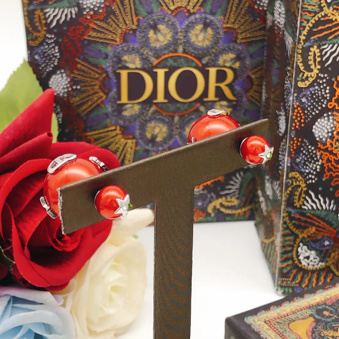 / Dior Glamorous Red Pearl Stud Earrings